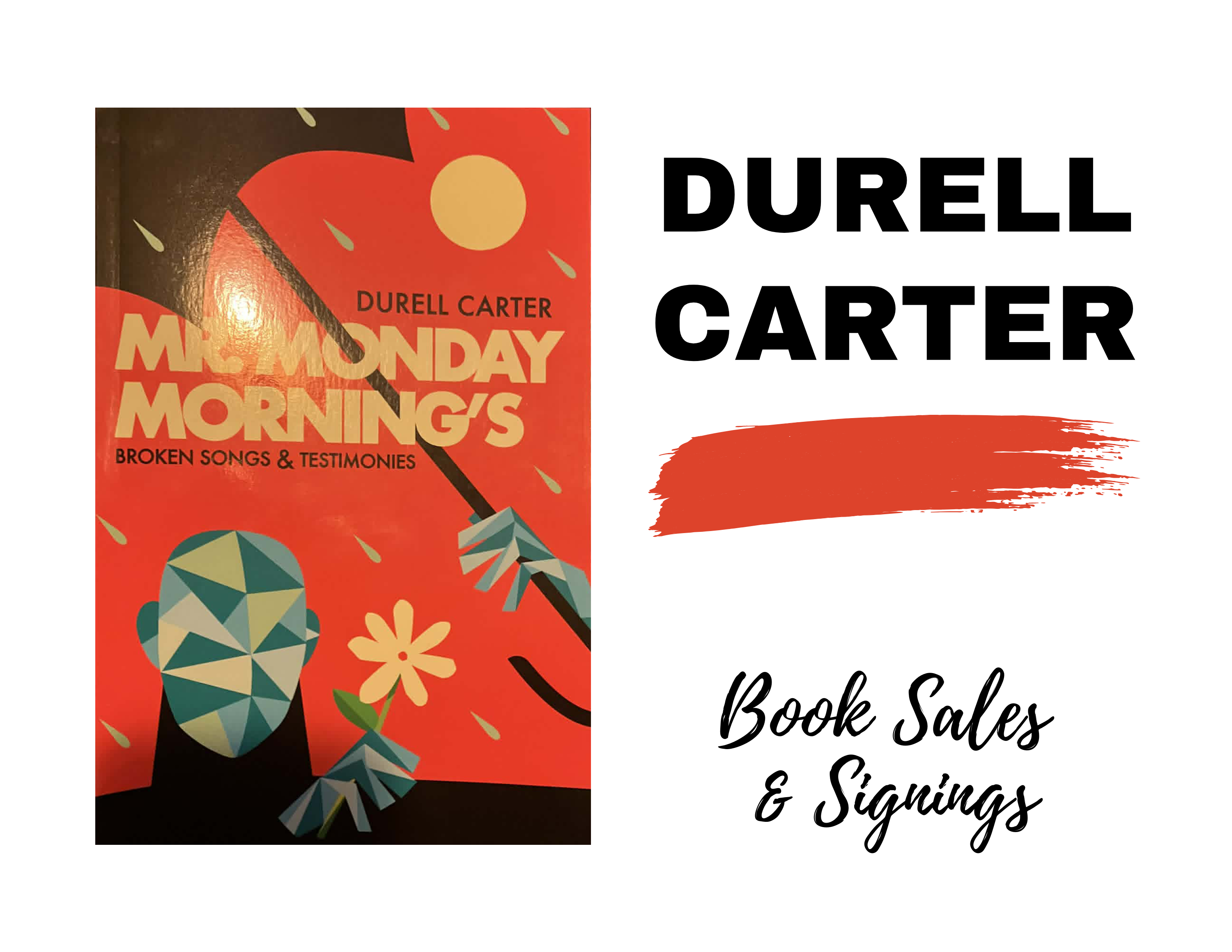 Images: 1. A sign for my collection, No Sea Here. 2. A sign for Durell Carter’s collection, Mr. Monday Morning’s Broken Songs and Testimonies. 3. A sign for Moon in the Rye Press.